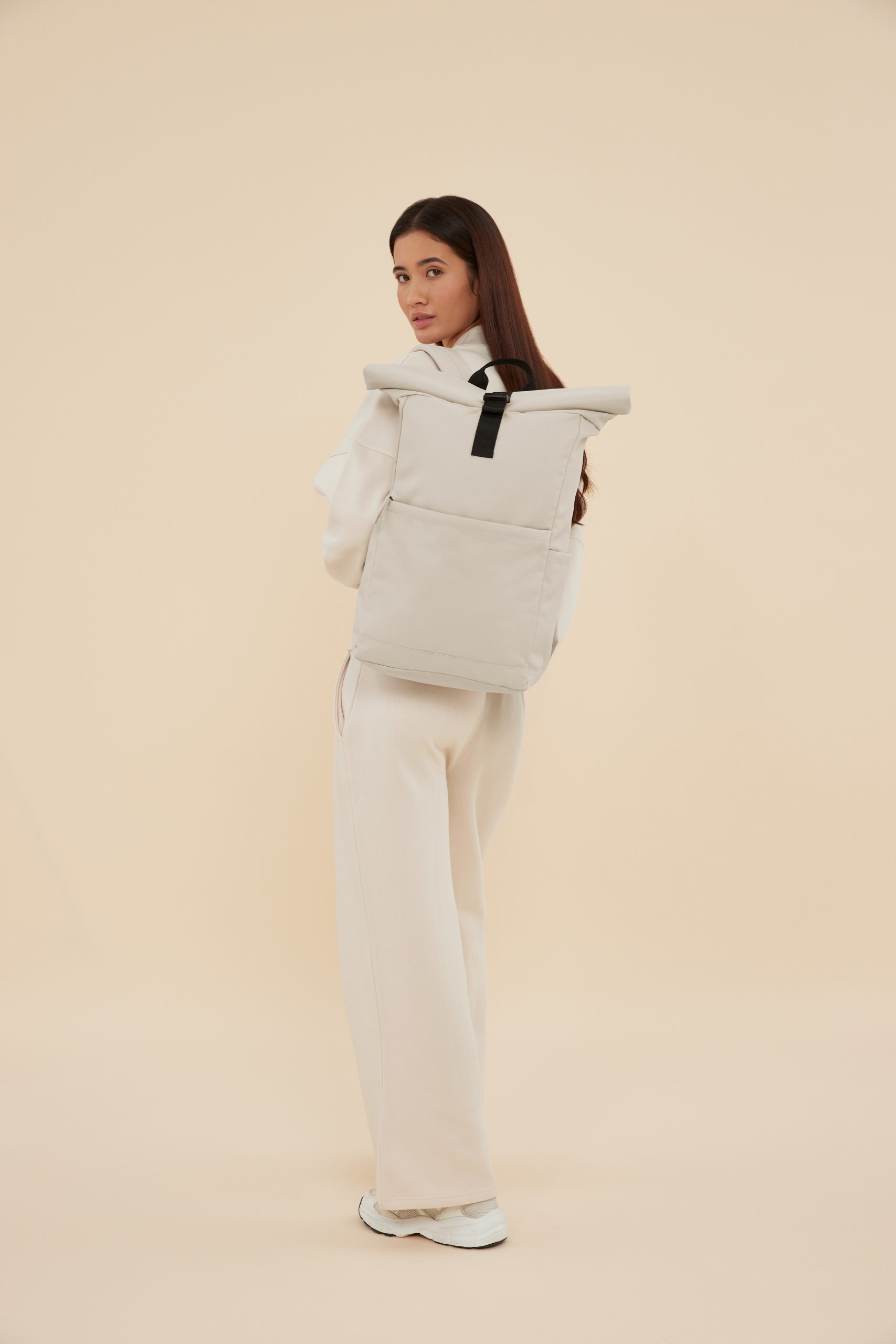 Recycelter 600D-Polyester Vollständig gefüttert mit 100% recyceltem 210D-Polyester PVC-frei Hauptfach mit Reißverschluss Einstecktasche innen Reißverschluss-Tasche vorne Reißverschlusstasche auf der Rückseite Seitliche Taschen Gepolsterter Rückeneinsatz Rolltop-Verschluss Gepolsterte, verstellbare Schultergurte Abreißetikett Volumen: 18 Liter